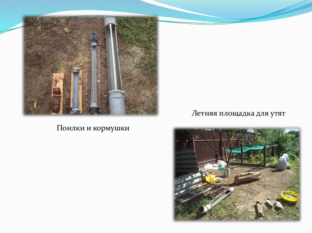 Летняя площадка для утятПоилки и кормушки