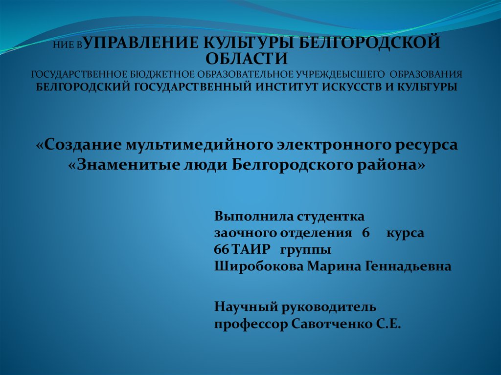 Создание мультимедийного электронного ресурса «Знаменитые люди Белгородского района»