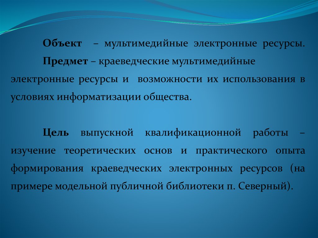 Объект– мультимедийные электронные ресурсы.
