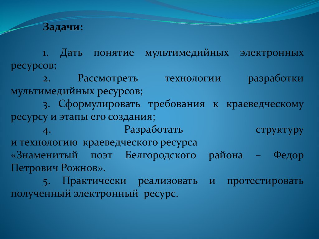 Задачи:1. Дать понятие мультимедийных электронных