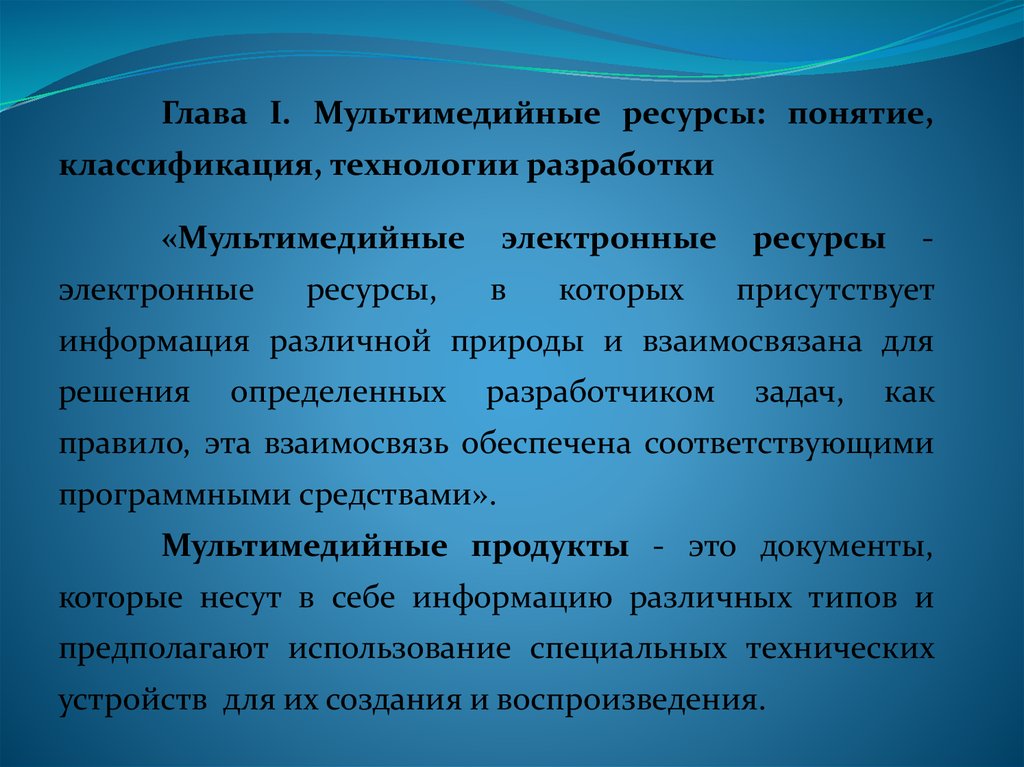 Глава I. Мультимедийные ресурсы: понятие,классификация, технологии разработки