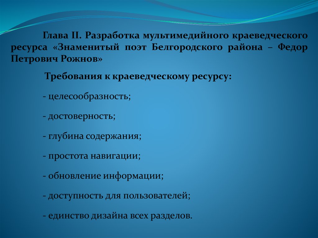 Глава II. Разработка мультимедийного краеведческогоресурса «Знаменитый поэт Белгородского района – Федор