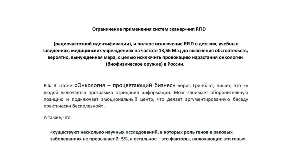 Уничтожение России лишением рассудка и онкологией