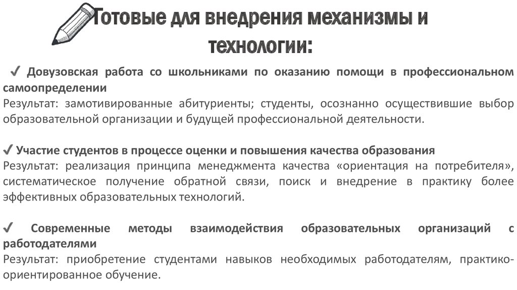 11. ✔Разработка методов помощи в профессиональном самоопределении (участие вузов, предприятий, государства); ✔Оптимизация методов