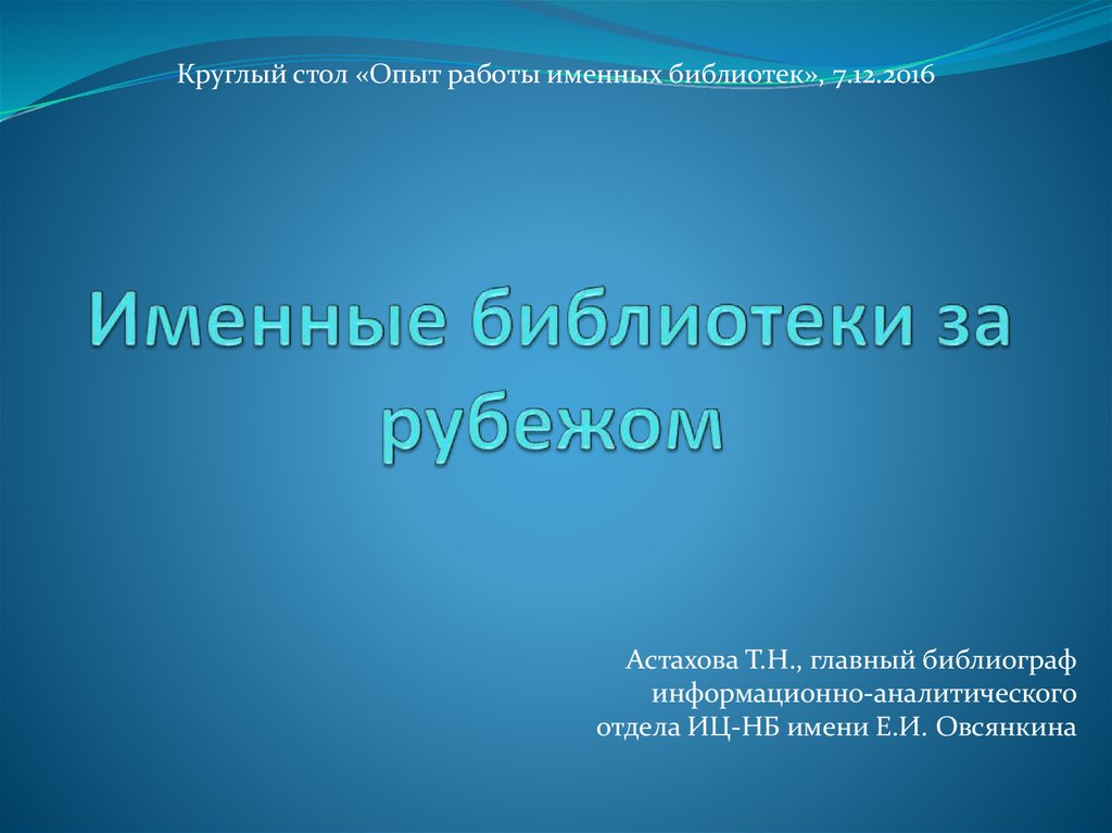 1. Именные библиотеки за рубежом
