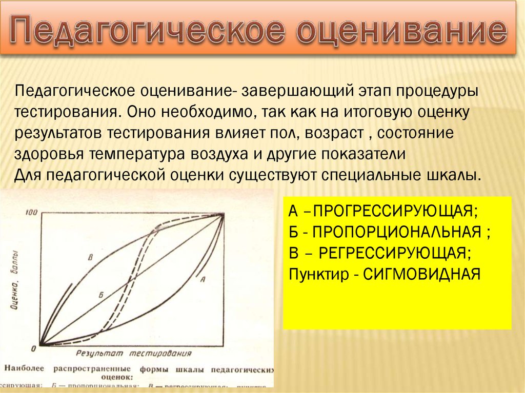 Педагогическое оценивание- завершающий этап процедурытестирования. Оно необходимо, так как на итоговую оценку