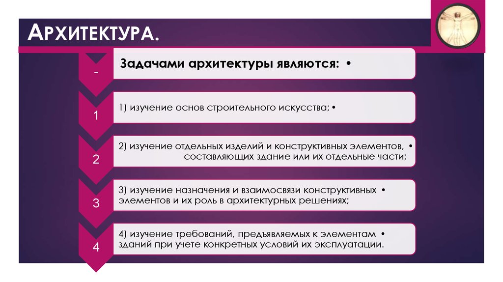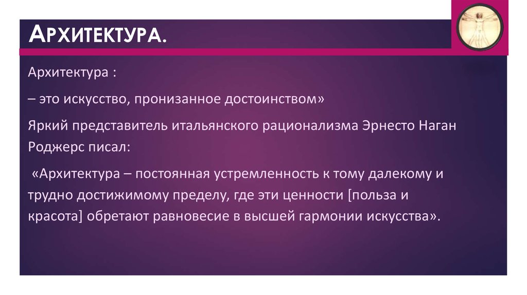 АРХИТЕКТУРА.По формуле Витрувия (римского теоретика архитектуры I в. до н. э.),