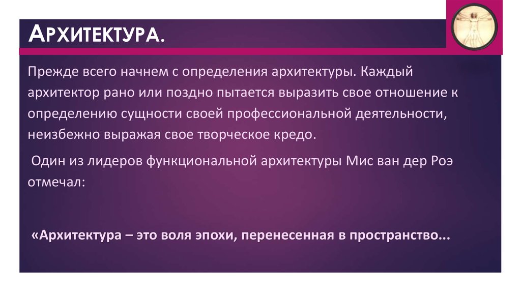 АРХИТЕКТУРА.Прежде всего начнем с определения архитектуры. Каждый