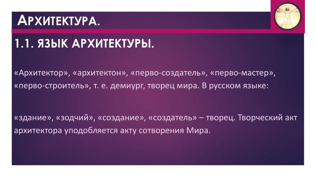 АРХИТЕКТУРА.1.1. ЯЗЫК АРХИТЕКТУРЫ.