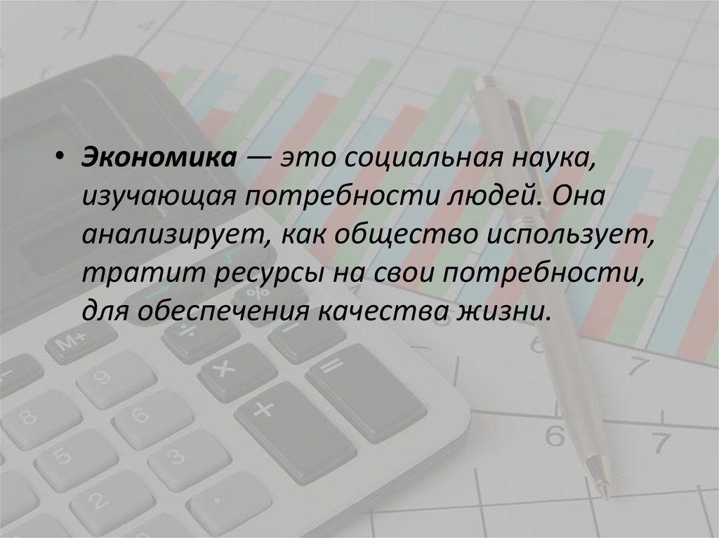• Экономика — это социальная наука,изучающая потребности людей. Она