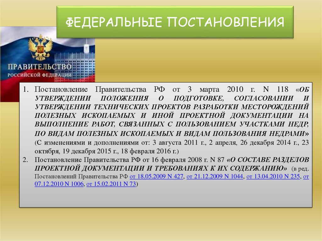 ФЕДЕРАЛЬНЫЕ ПОСТАНОВЛЕНИЯ1. Постановление Правительства РФ от 3 марта 2010 г. N 118 «ОБ