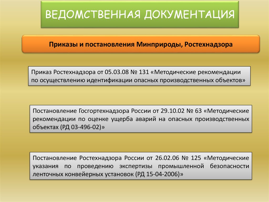 ВЕДОМСТВЕННАЯ ДОКУМЕНТАЦИЯПриказы и постановления Минприроды, Ростехнадзора