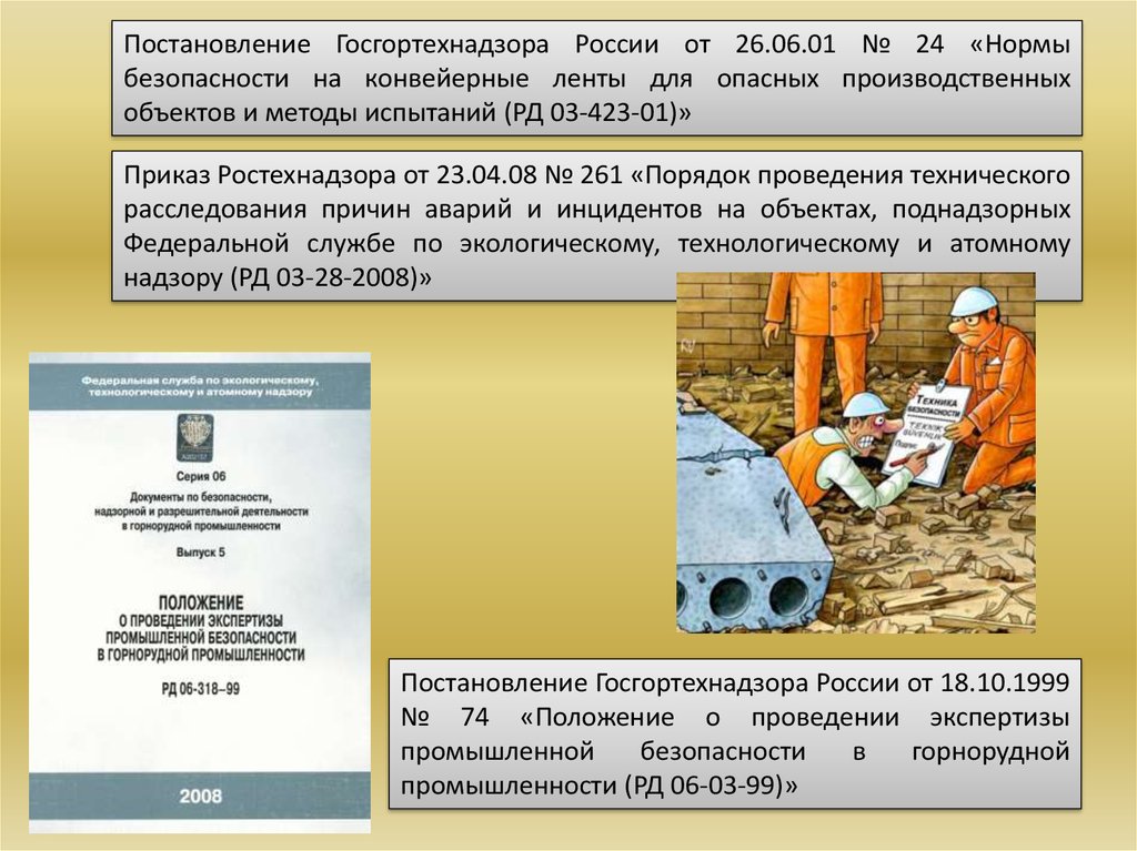 Постановление Госгортехнадзора России от 26.06.01 № 24 «Нормыбезопасности на конвейерные ленты для опасных производственных
