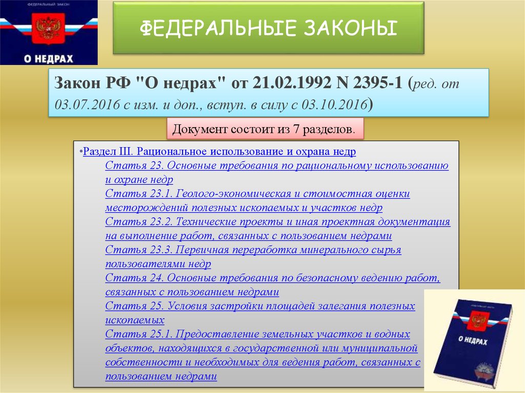ФЕДЕРАЛЬНЫЕ ЗАКОНЫЗакон РФ "О недрах" от 21.02.1992 N 2395-1 (ред. от