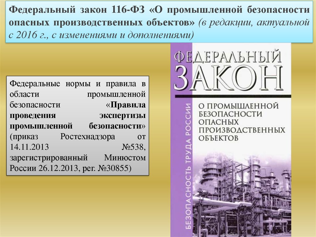 Федеральный закон 116-ФЗ «О промышленной безопасностиопасных производственных объектов» (в редакции, актуальной
