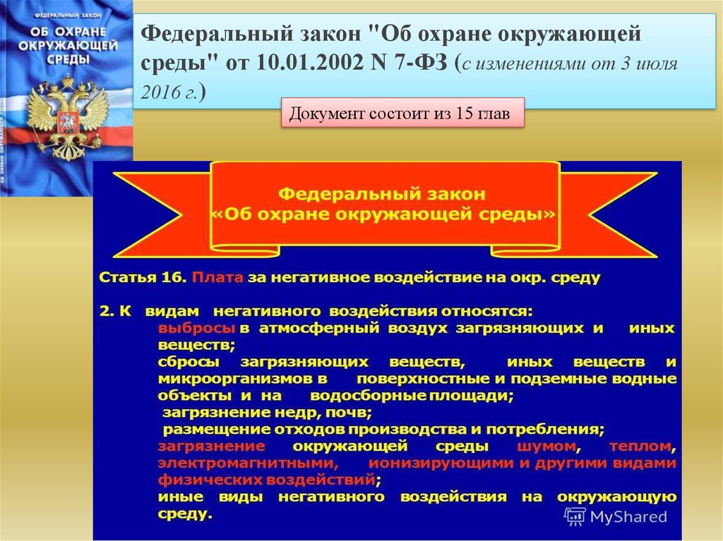 Федеральный закон "Об охране окружающейсреды" от 10.01.2002 N 7-ФЗ (с изменениями от 3 июля