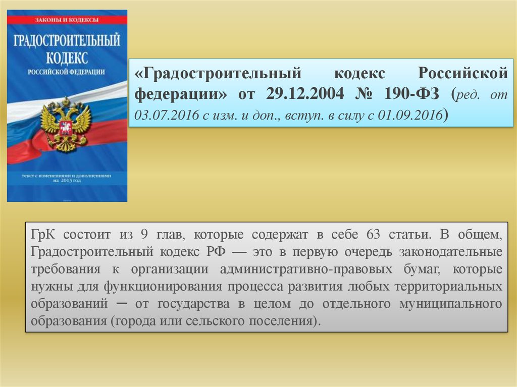 Градостроительный кодекс РФ — это в первую очередь законодательные