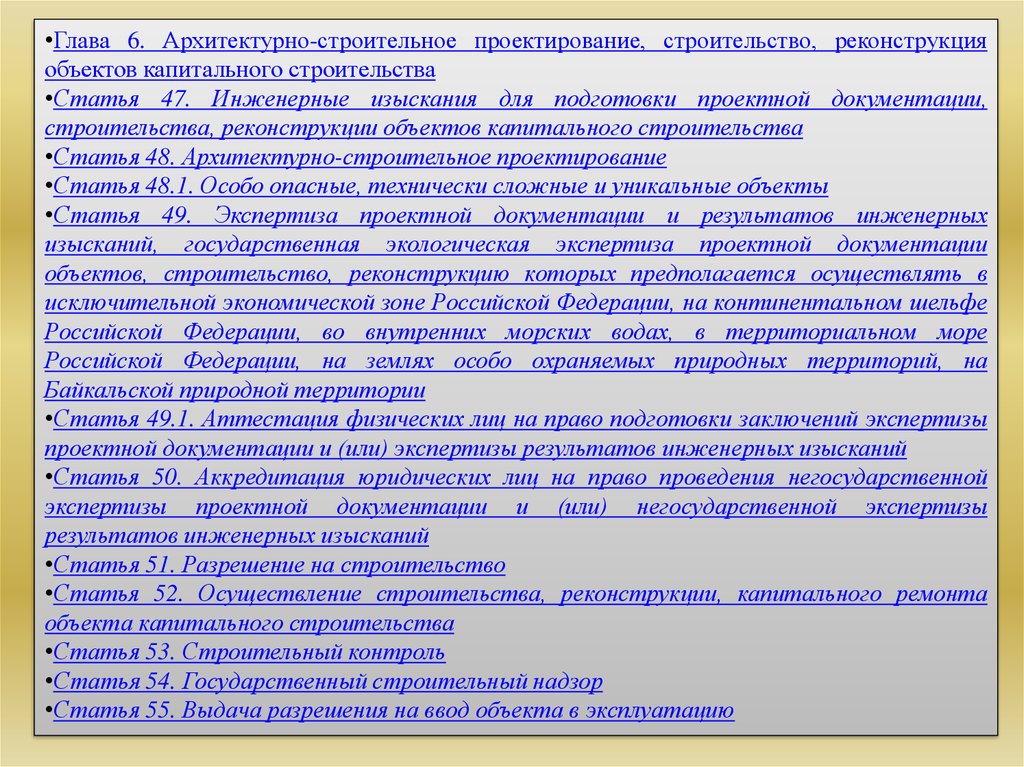 •Глава 6. Архитектурно-строительное проектирование, строительство, реконструкцияобъектов капитального строительства