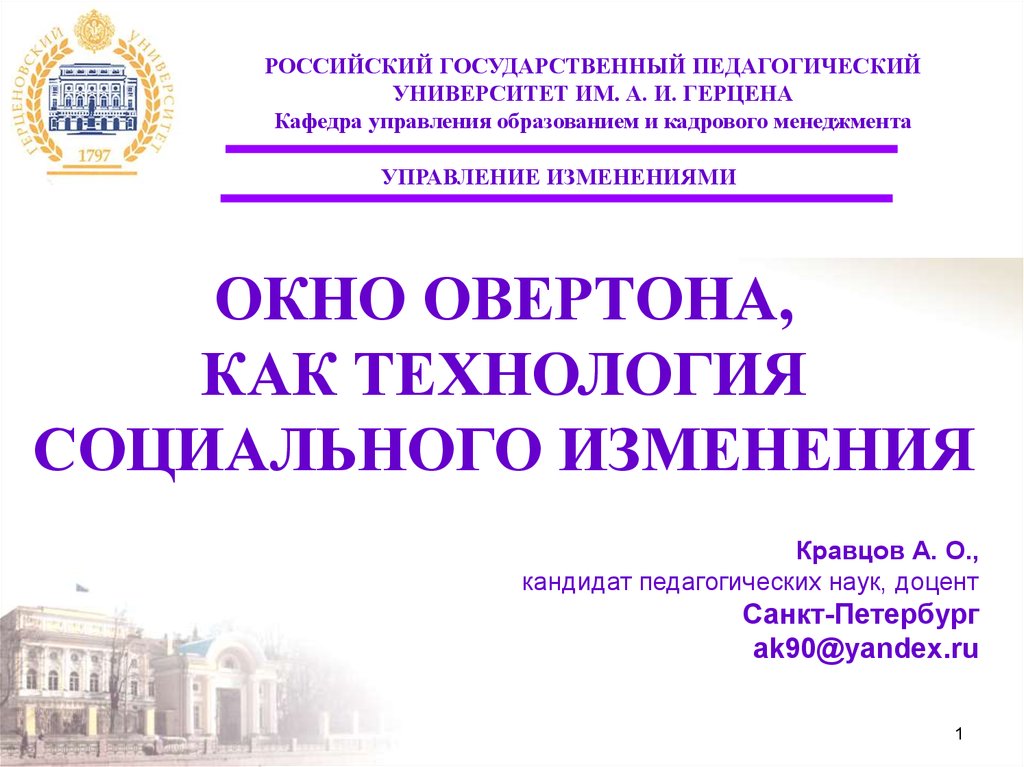1. ОКНО ОВЕРТОНА, КАК ТЕХНОЛОГИЯ СОЦИАЛЬНОГО ИЗМЕНЕНИЯ