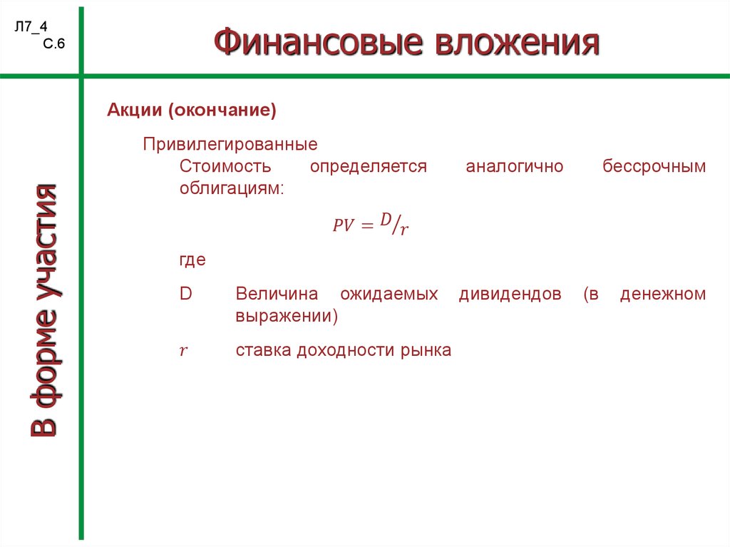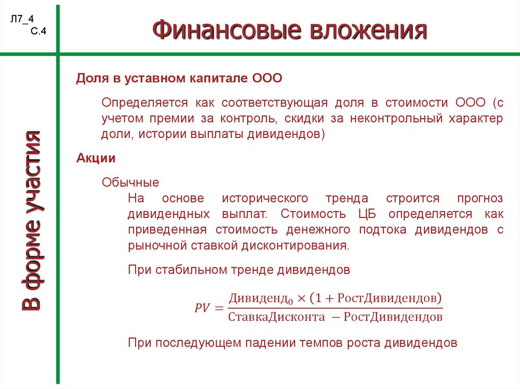 ЗП к оценке бизнеса: оценка стоимости финансовых вложений