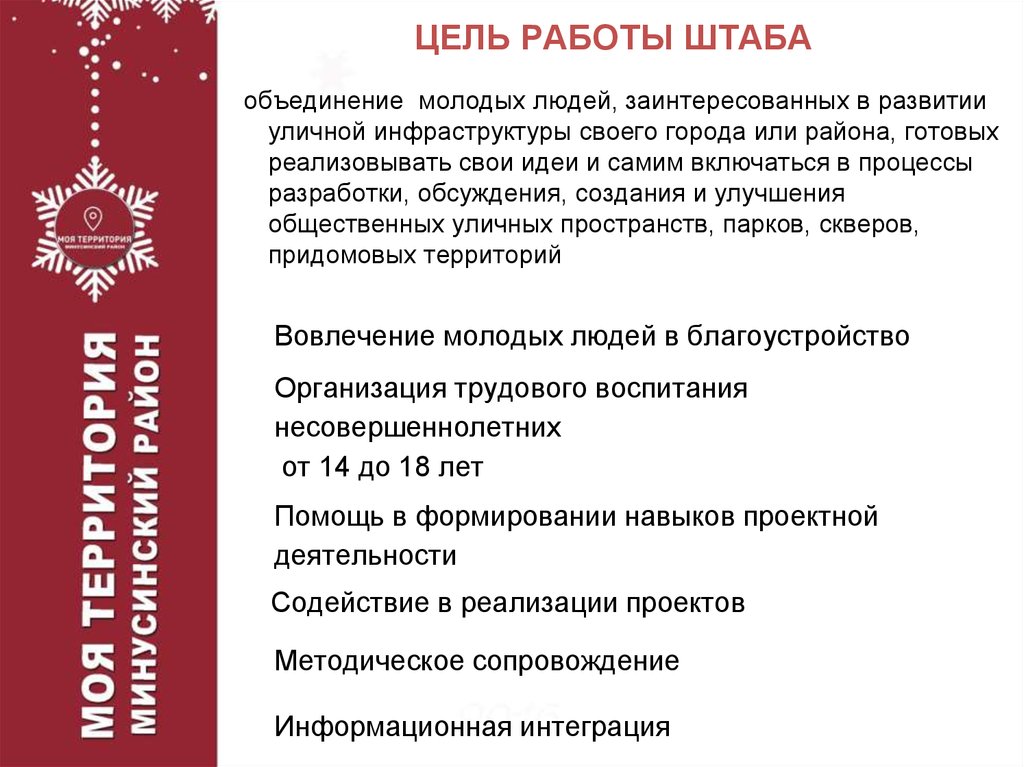 ЦЕЛЬ РАБОТЫ ШТАБАобъединение молодых людей, заинтересованных в развитии