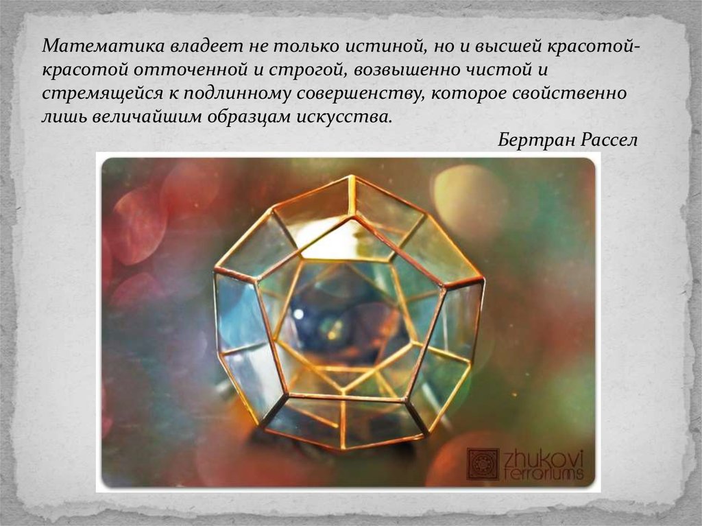 Математика владеет не только истиной, но и высшей красотойкрасотой отточенной и строгой, возвышенно чистой истремящейся к подлинному совершенству, которое свойственно