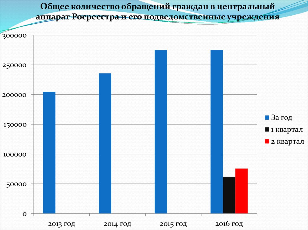 Общее количество обращений граждан в центральныйаппарат Росреестра и его подведомственные учреждения