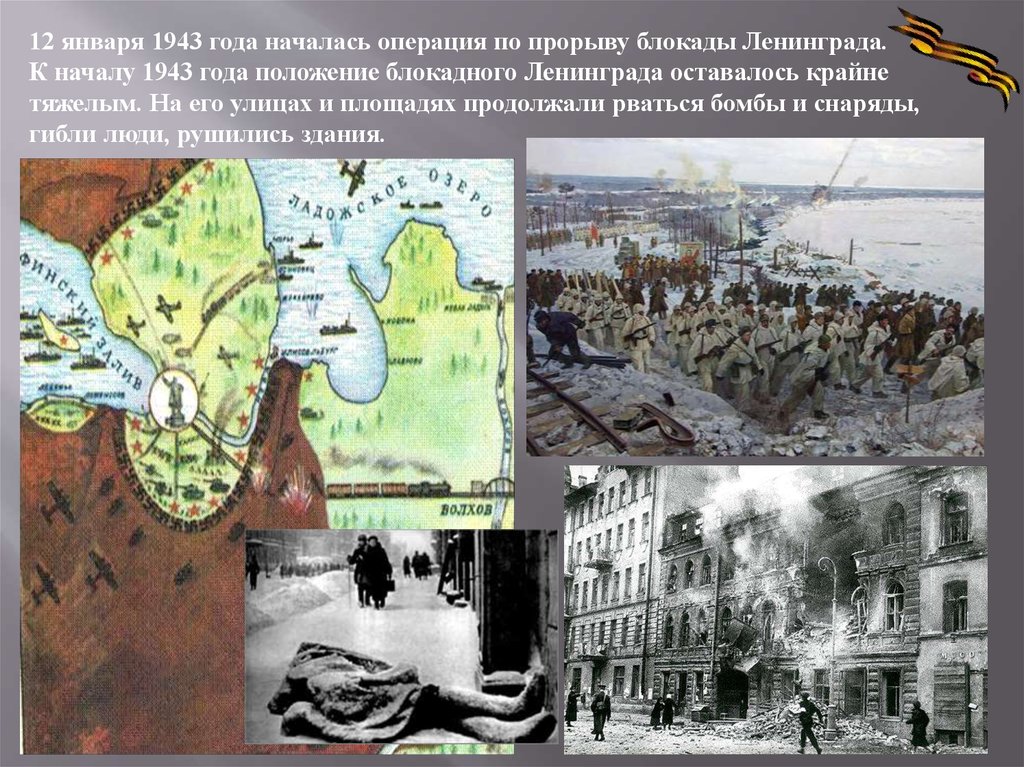 12 января 1943 года началась операция по прорыву блокады Ленинграда.К началу 1943 года положение блокадного Ленинграда оставалось крайне