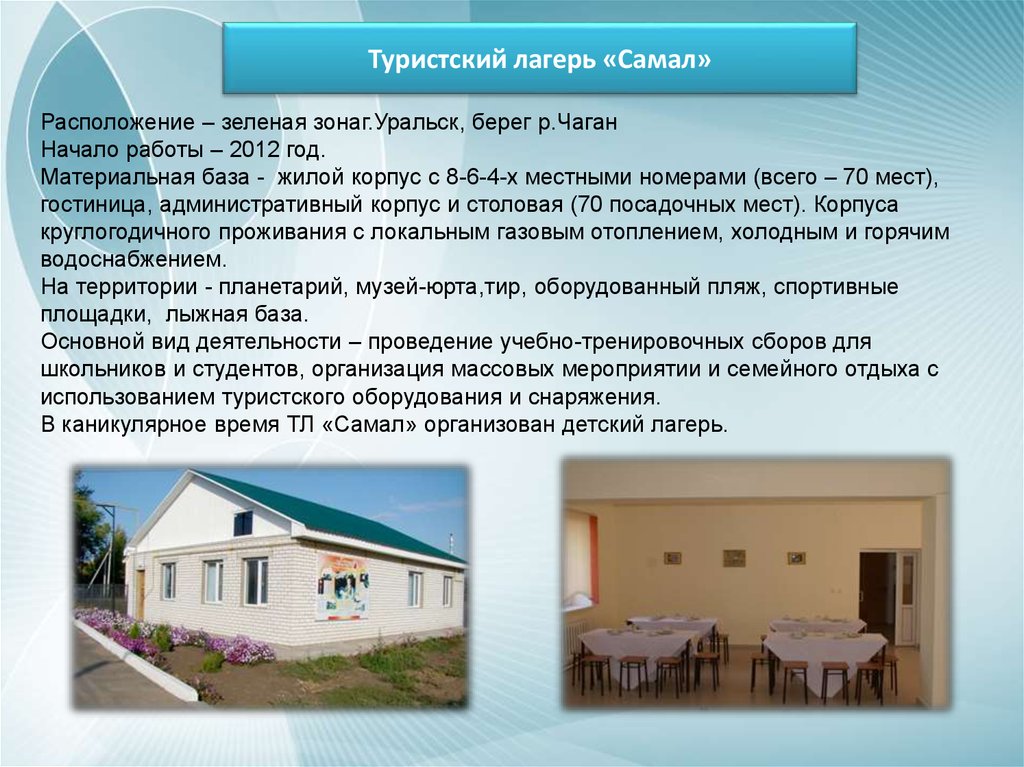 Туристский лагерь «Самал»Расположение – зеленая зонаг.Уральск, берег р.Чаган