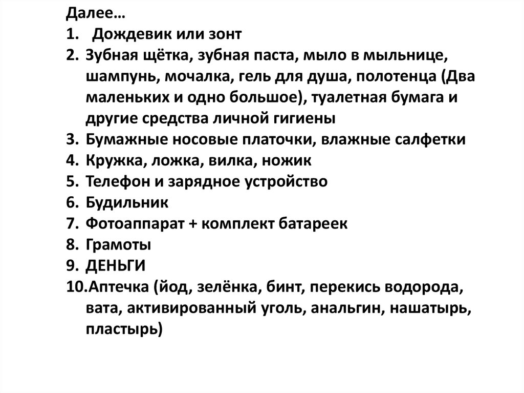 10.Аптечка (йод, зелёнка, бинт, перекись водорода,
