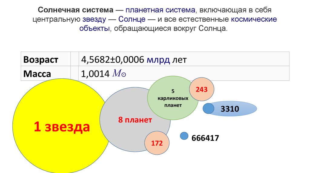 Солнечная система — планетная система, включающая в себяцентральную звезду — Солнце — и все естественные космические