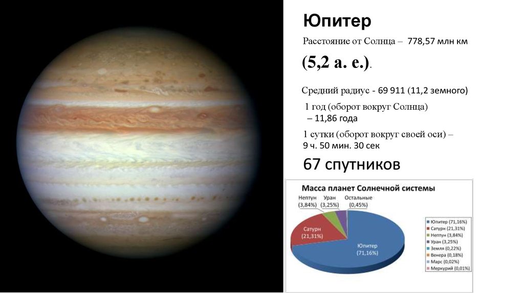 ЮпитерРасстояние от Солнца – 778,57 млн км