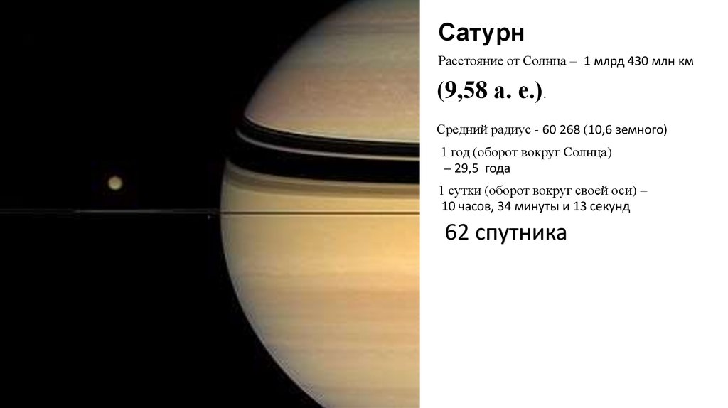 СатурнРасстояние от Солнца – 1 млрд 430 млн км