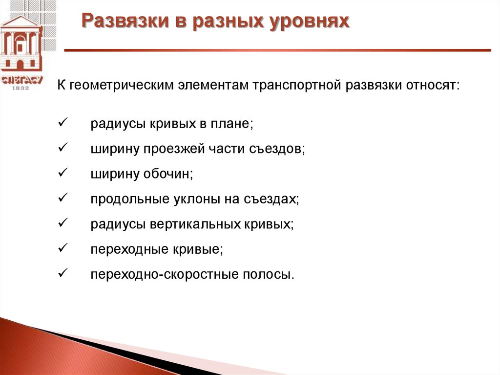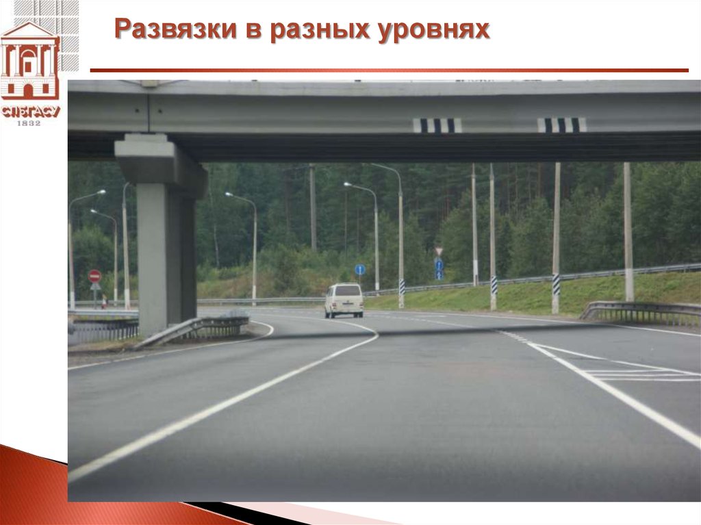 Развязки в разных уровняхК геометрическим элементам транспортной развязки относят: