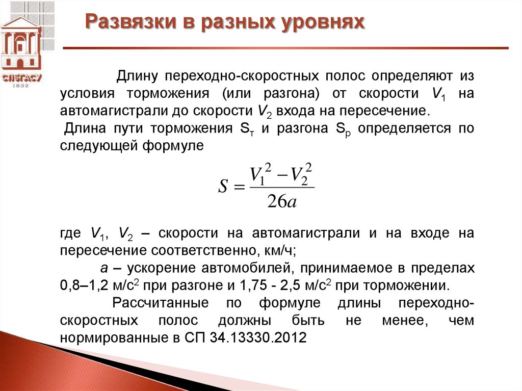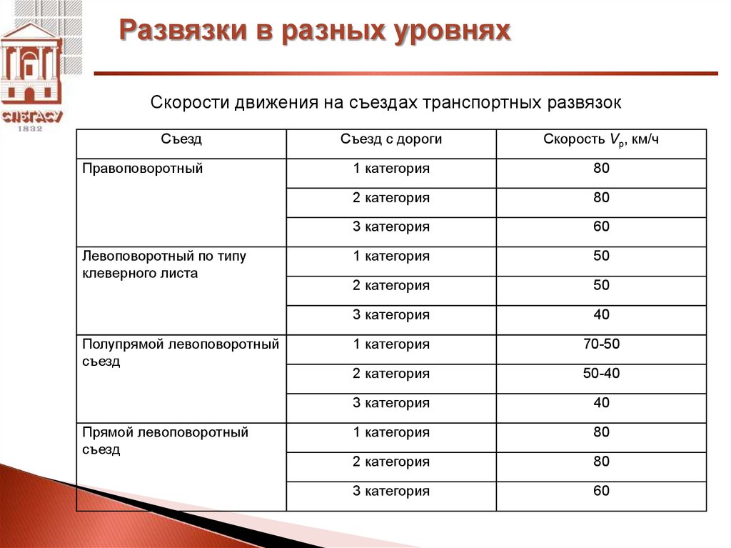 Развязки в разных уровняхСкорости движения на съездах транспортных развязок