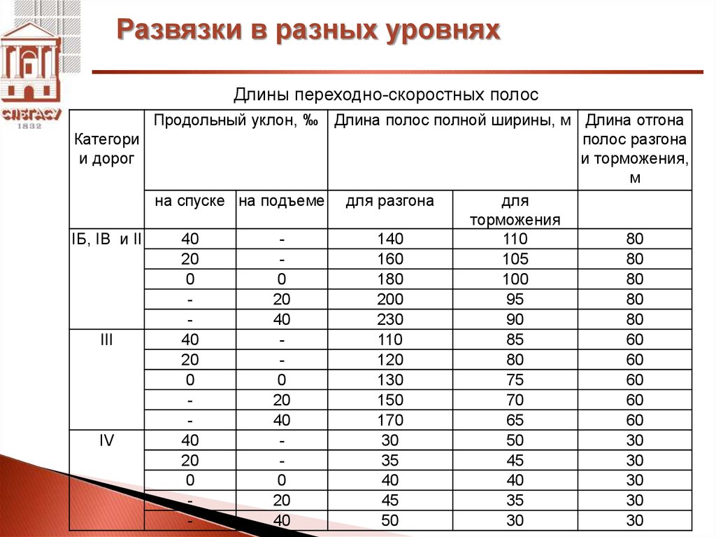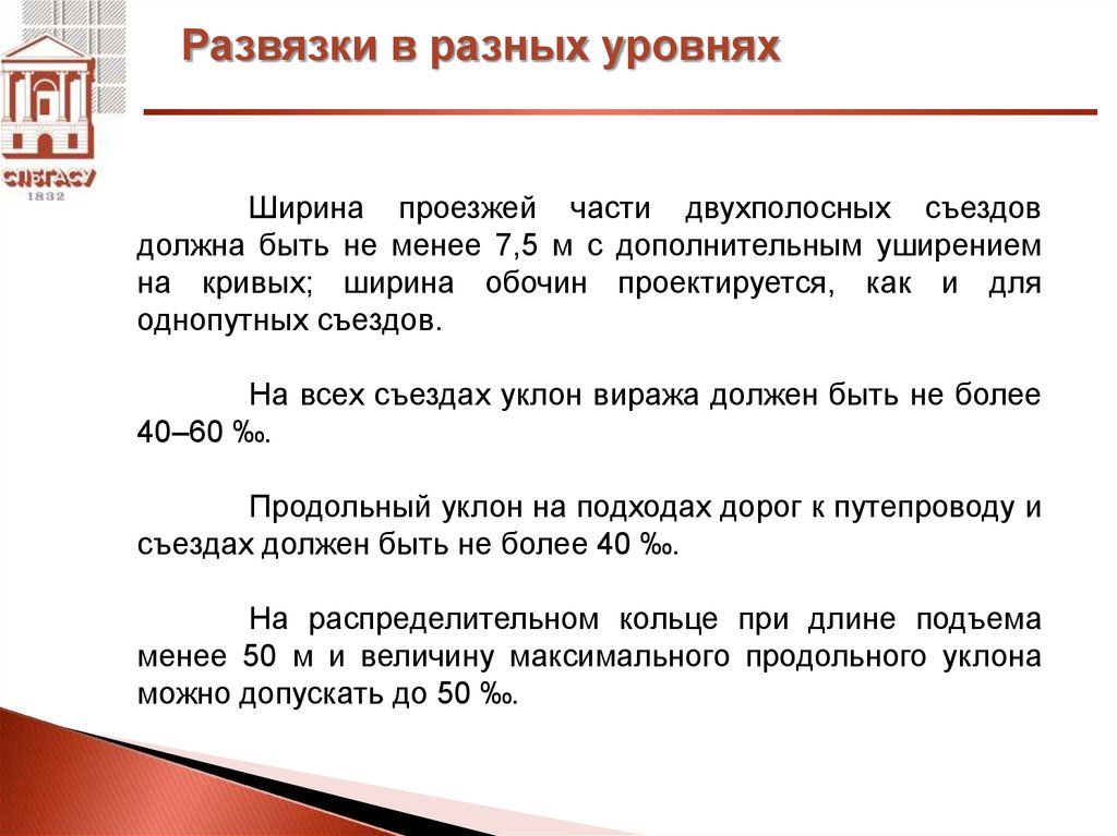 Развязки в разных уровняхШирина проезжей части двухполосных съездов