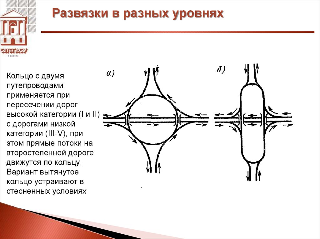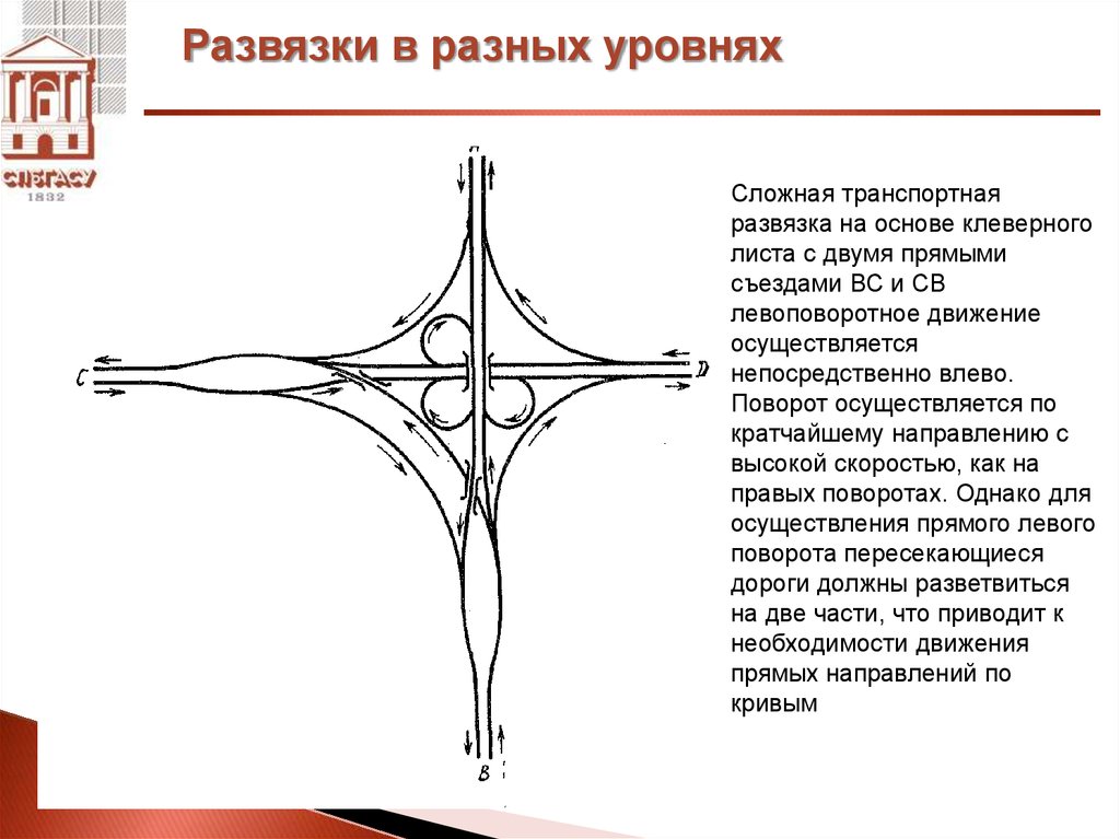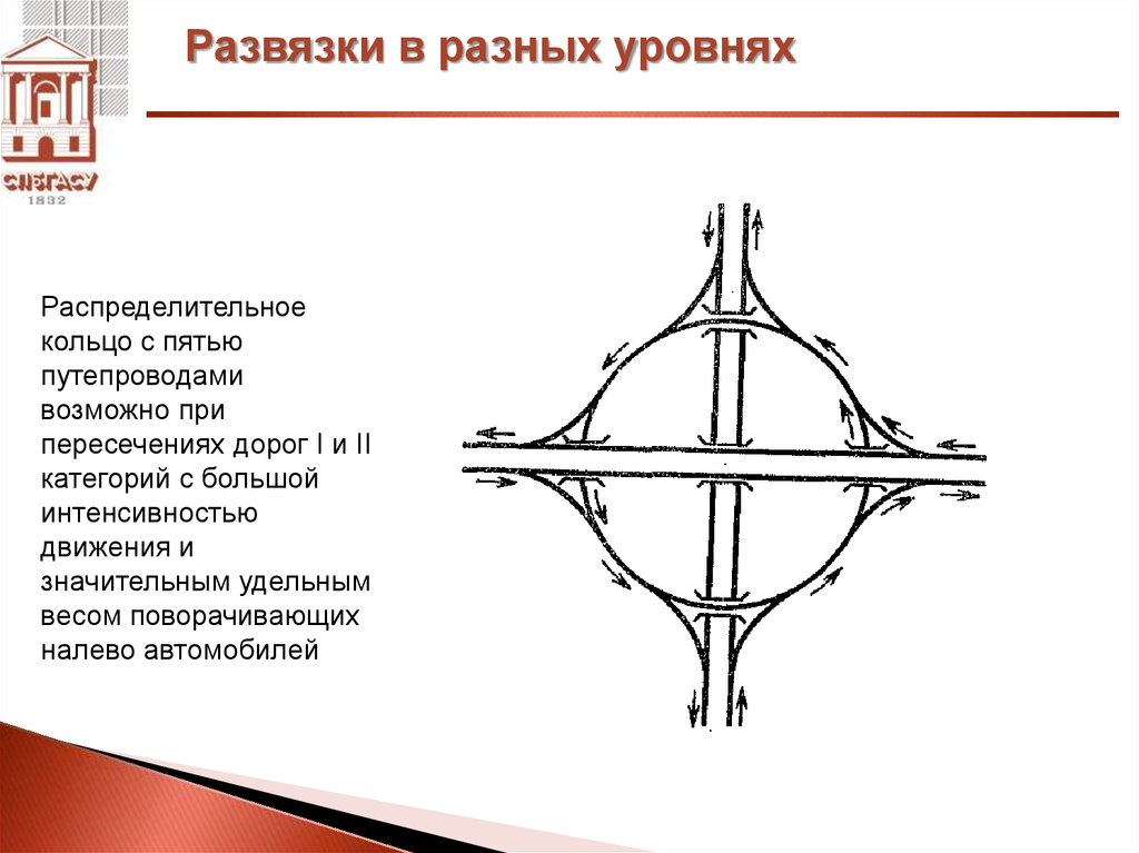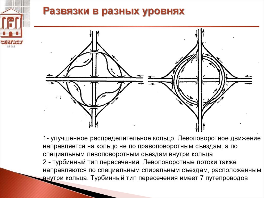 Развязки в разных уровнях1- улучшенное распределительное кольцо. Левоповоротное движение