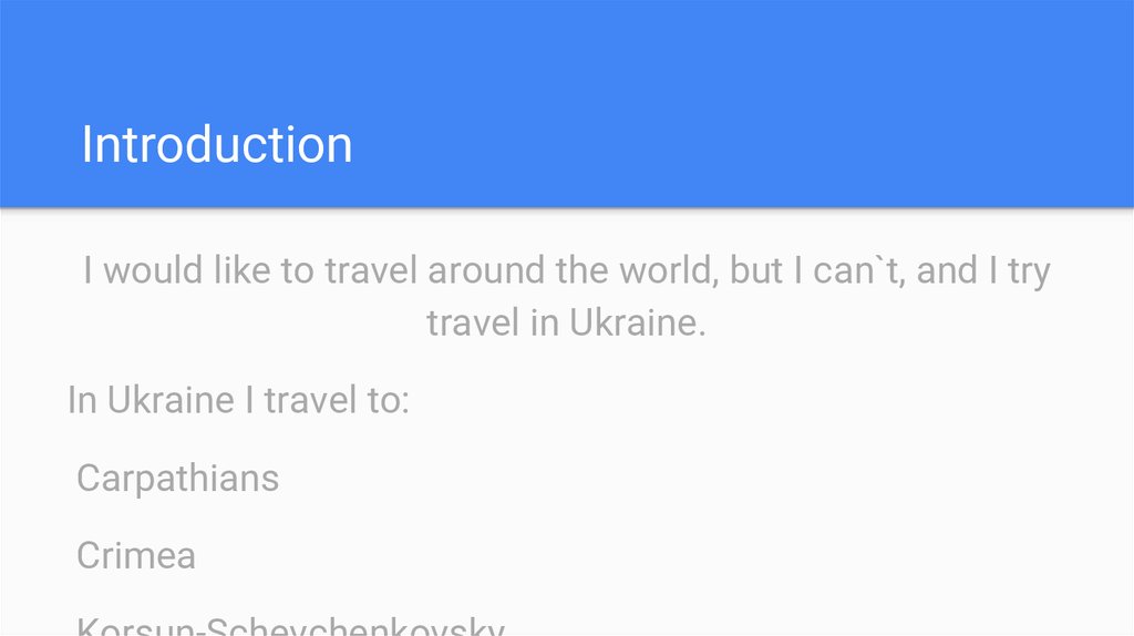 IntroductionI would like to travel around the world, but I can`t, and I try