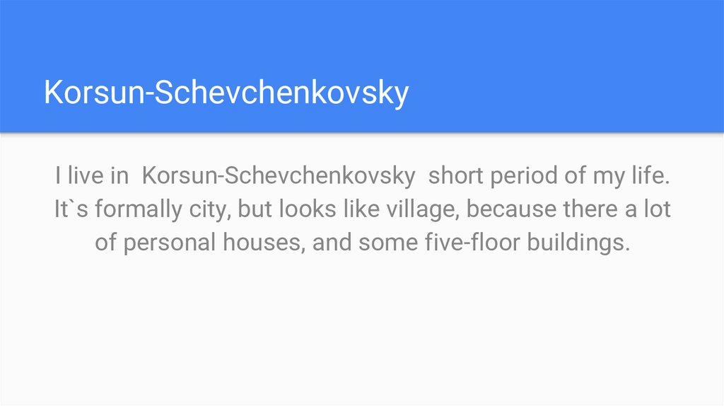Korsun-SchevchenkovskyI live in Korsun-Schevchenkovsky short period of my life.