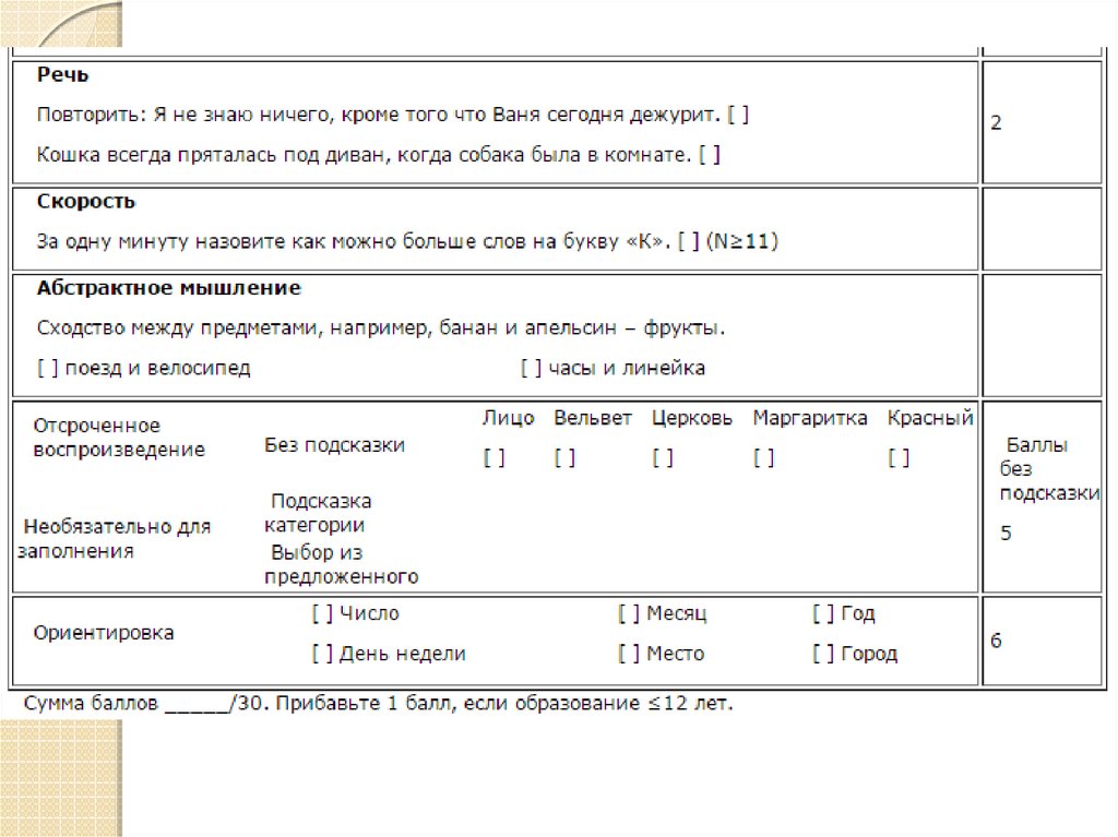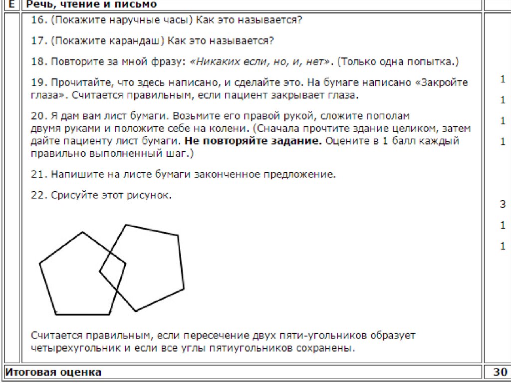 28–30 баллов – нет когнитивных нарушений;