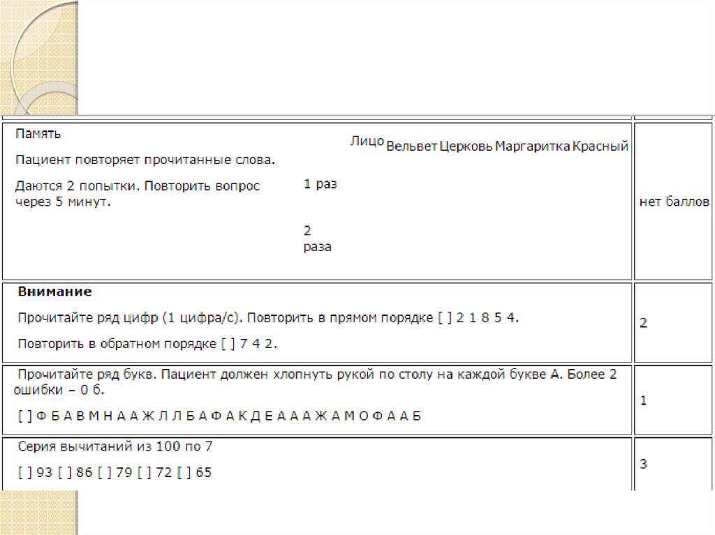 ◦ Краткая шкала оценки психического