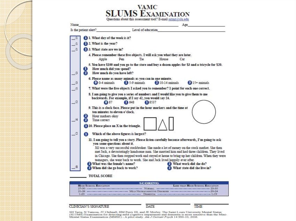 ◦ Saint Louis University Mental Status (SLUMS)