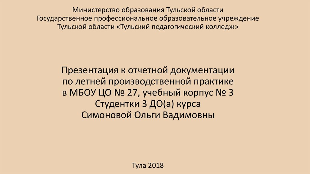 «Тульский педагогический колледж»Презентация к отчетной документации