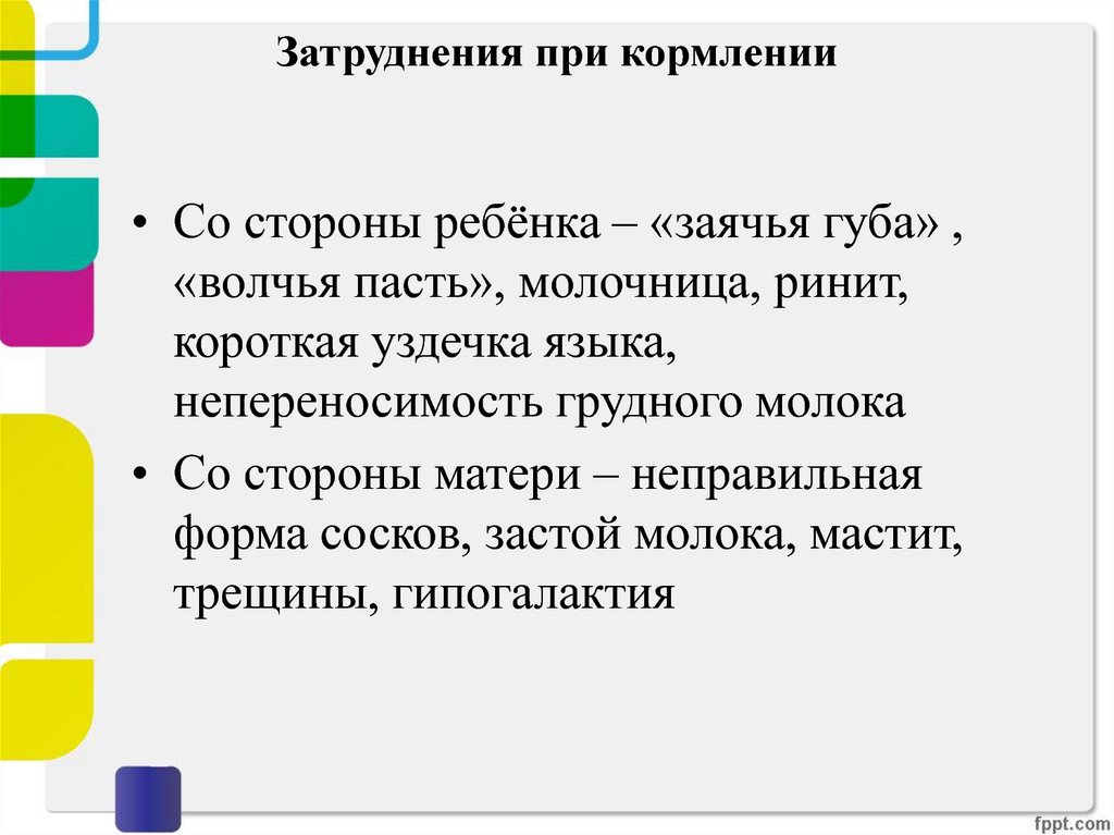 Противопоказания к кормлению грудью• Со стороны ребёнка – врождённые аномалии