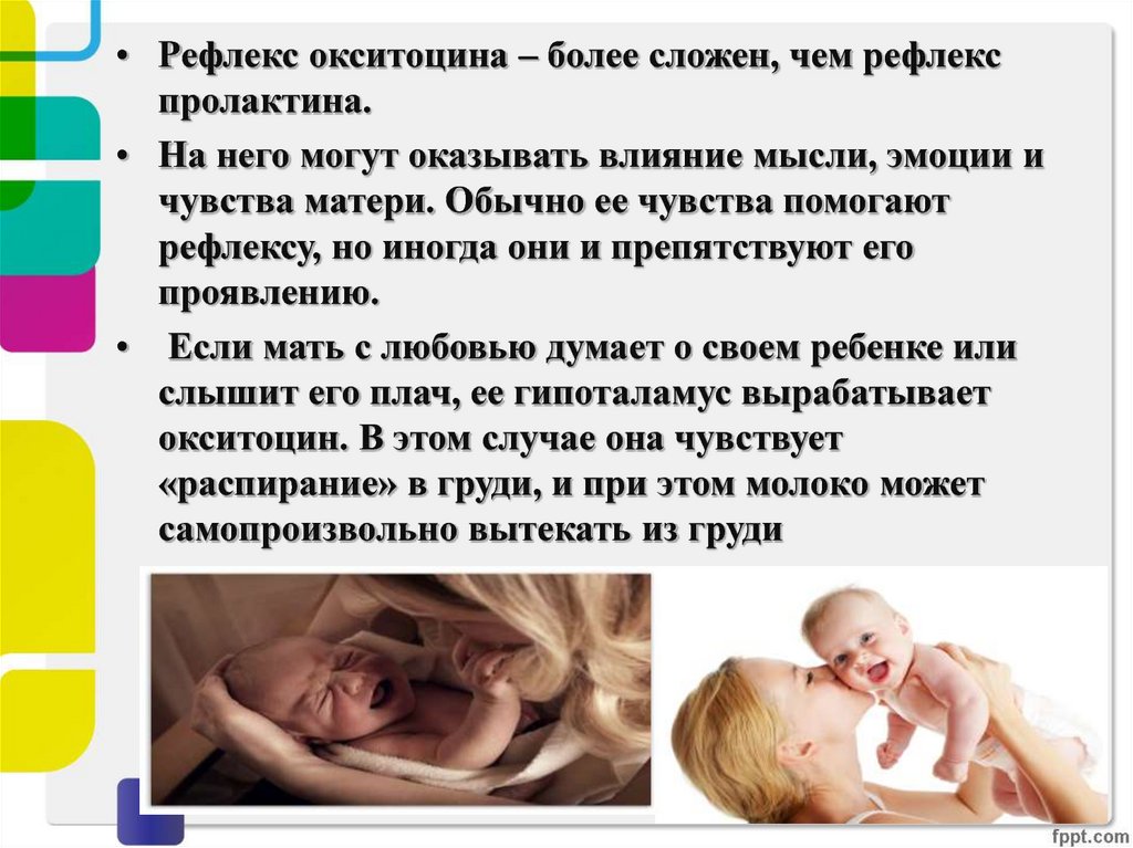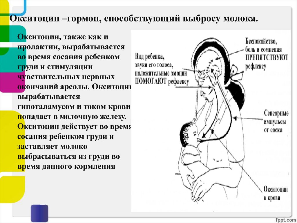 Окситоцин –гормон, способствующий выбросу молока.Окситоцин, также как и