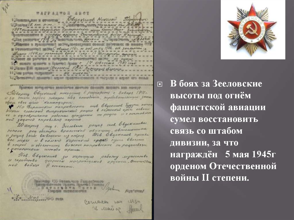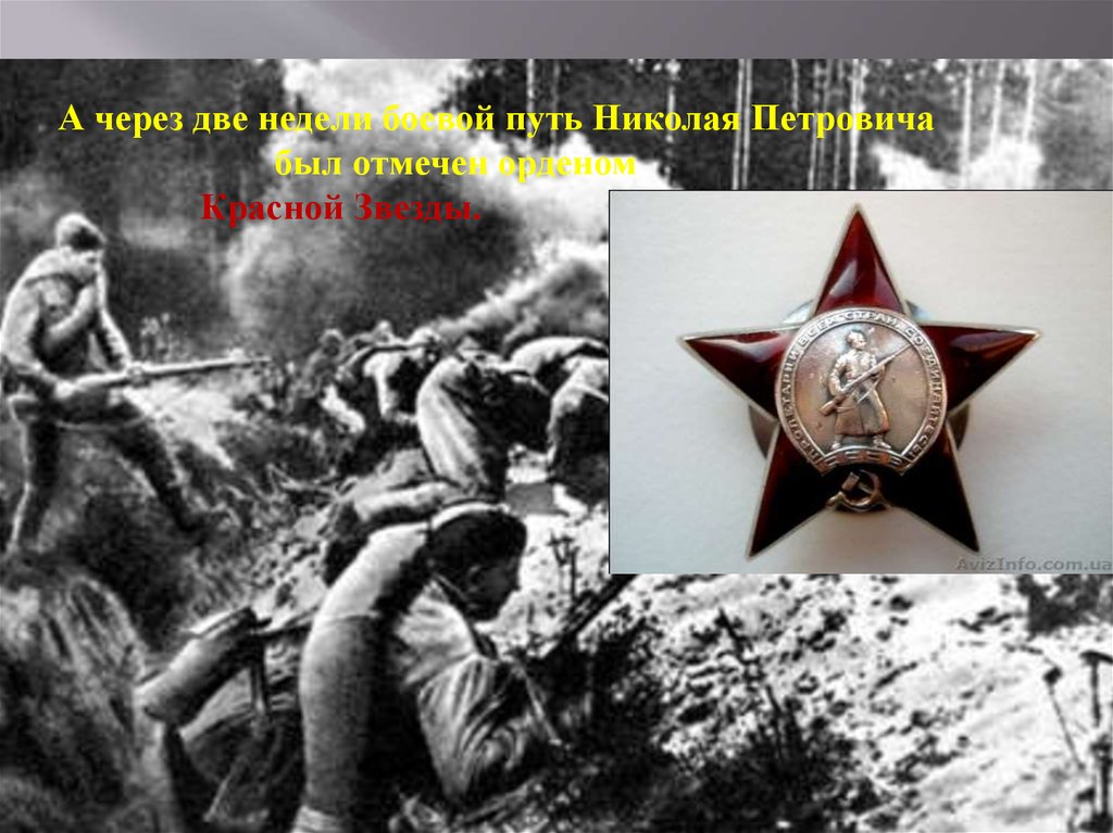 А через две недели боевой путь Николая Петровичабыл отмечен орденом