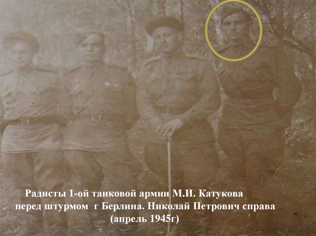 Радисты 1-ой танковой армии М.И. Катуковаперед штурмом г Берлина. Николай Петрович справа