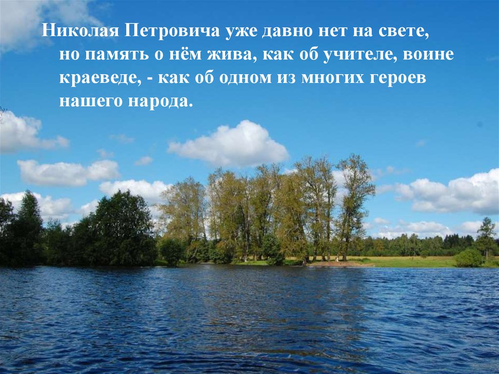 Николая Петровича уже давно нет на свете,но память о нём жива, как об учителе, воине