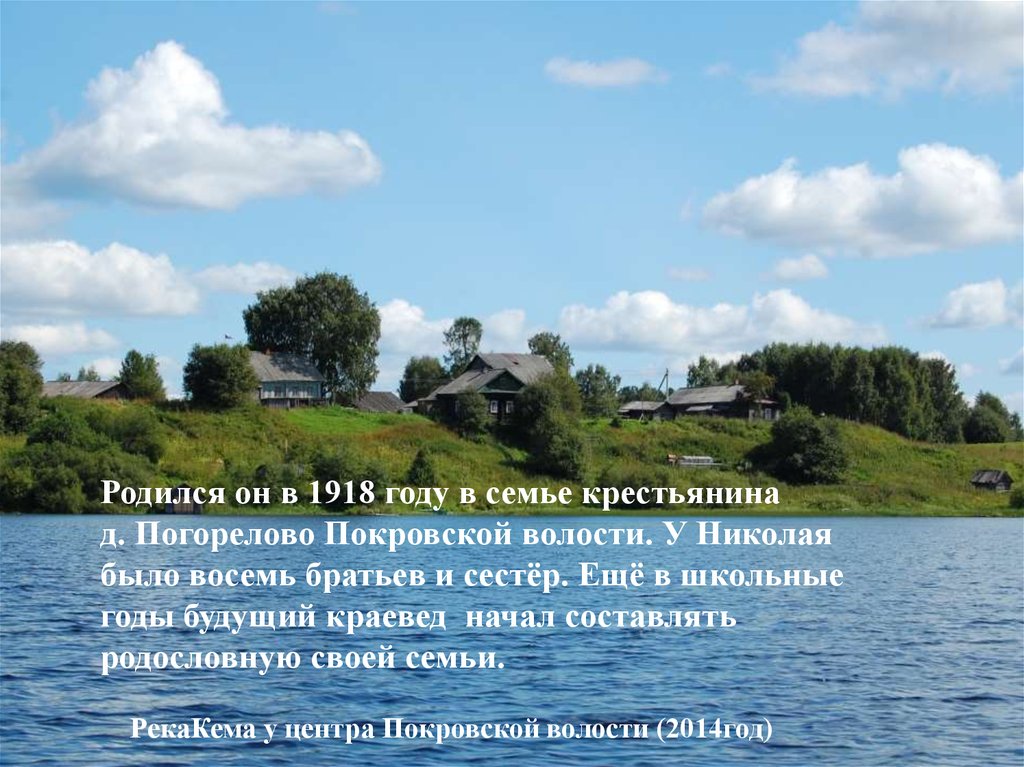 Родился он в 1918 году в семье крестьянинад. Погорелово Покровской волости. У Николая