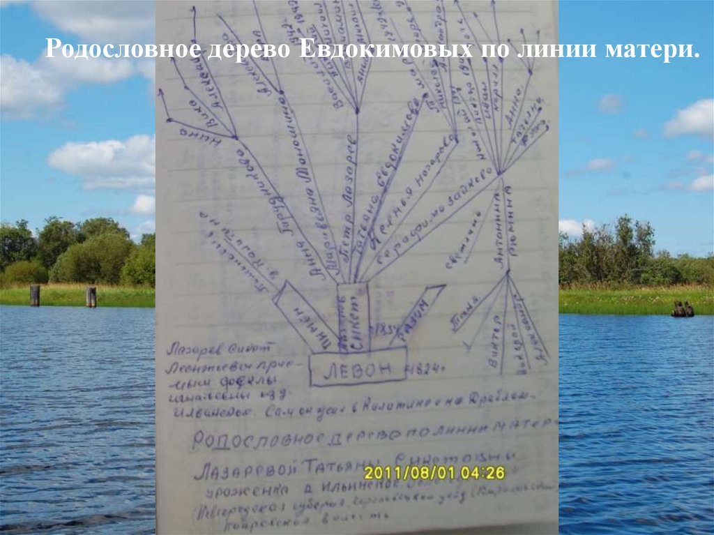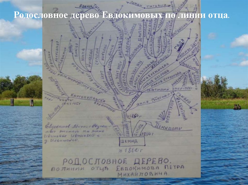 Родословное дерево Евдокимовых по линии матери.7. Окончив Покровскую семилетнюю школу, он поступил в Белозерское педучилище. Перед самой войной, окончив Ленинградское военное